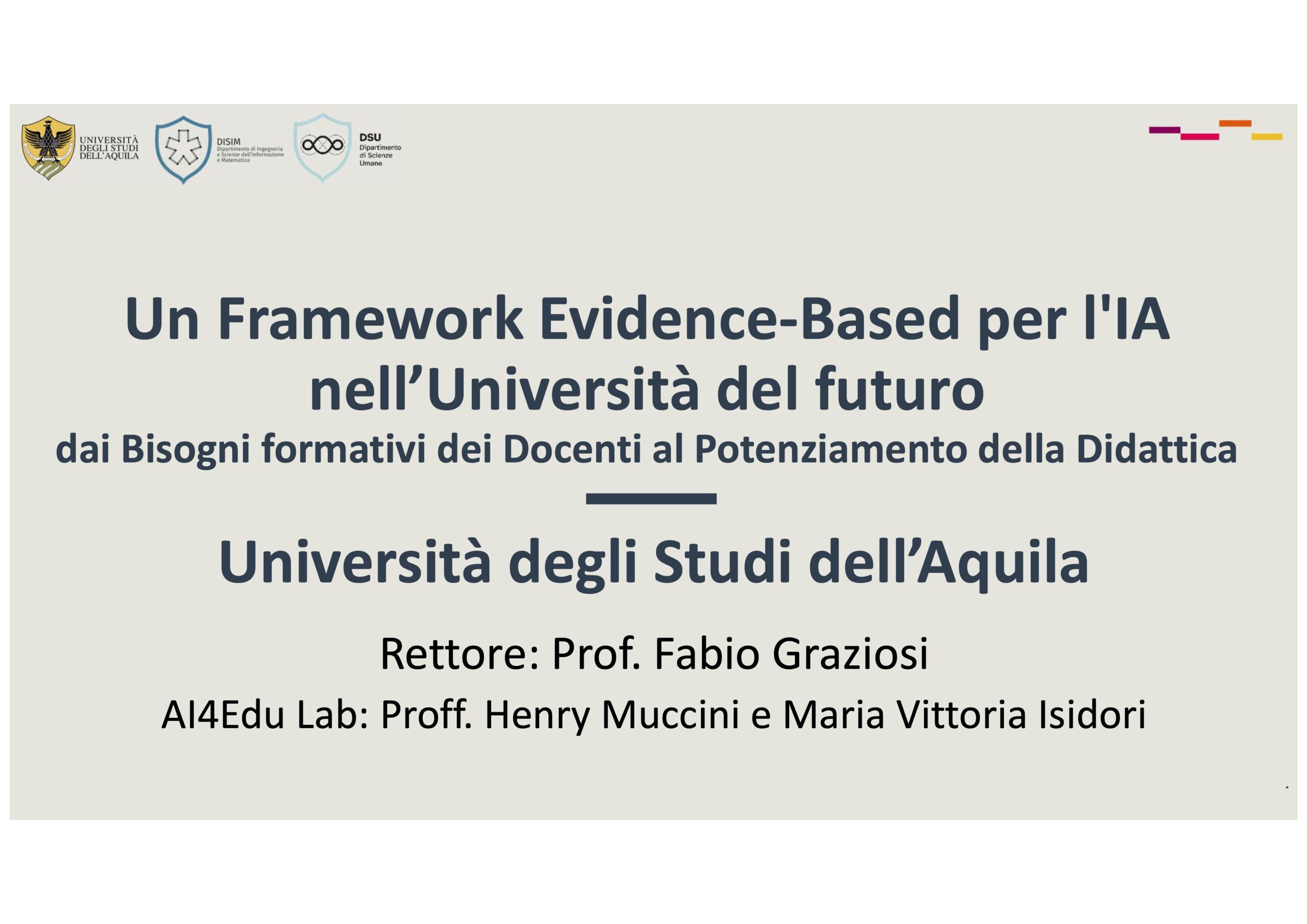 The University of L’Aquila, represented by the FrAmeLab director Prof. Henry Muccini, has presented the activities of the AI4Edu lab. The lab aims at responding to three main questions: what is the level of digital competence and familiarity with generative AI among teachers in the Abruzzo region? How to define a training model that integrates digital, pedagogical, and ethical skills? How to validate the identified training model?