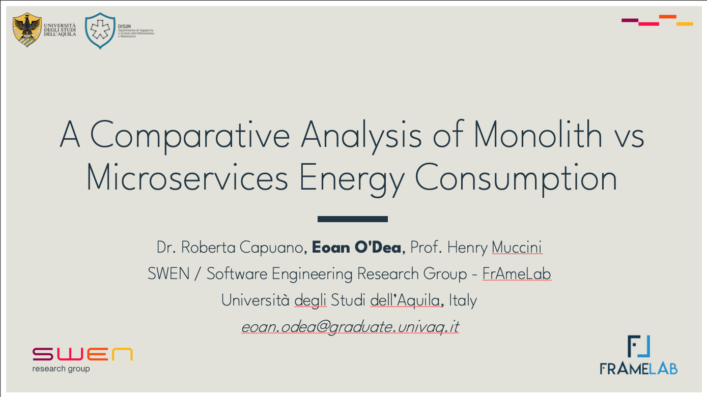 A Comparative Analysis of Monolith vs Microservices Energy Consumption, Presented by Eoan O’Dea